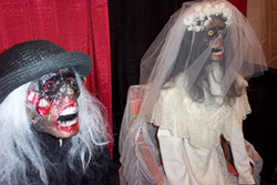 The show floor of Hauncon consisted of a mix of vendors catering to the haunt industry. Vendors ranged from designers, prop builders, makeup gurus, noise and lighting gadgets, decor and promotional type services. Follow us on a virtual tour of some highlighted vendors if you will. Click on the pictures for a larger view.